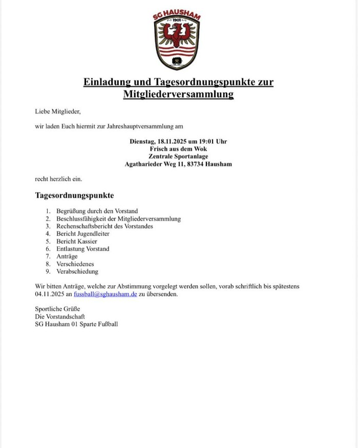 am Donnerstag den 20.11.2025 um 19.00 Uhr im „Frisch aus dem Wok“ an der zentralen Sportanlage Hausham findet unsere
