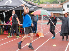 Der guten Stimmung tat das Wetter keinen Abbruch. Der oft nasse Untergrund erschwerte zwar die Bedingungen, aber Regenpausen gab es dennoch. Im Vorfeld hatte Sabrina Zeug als Haushamer Leichtathletikwartin bereits riesige Arbeit zu leisten. „Da war echt wieder viel zu tun“, bestätigt die 29-Jährige, die lieber „nur“ an den Start geht. Diesmal musste sie sich um alle Meldungen und später die Ergebnisse kümmern. Erschwerend kam hinzu, dass für sie und die Haushamer Athleten wetterbedingte Aufbauarbeiten zu erledigen waren, denn bei viel Regen „da sollen bei uns dann schon Zelte zum Unterstellen stehen“, bestätigt Wurf-Trainer Hans Zenzinger.