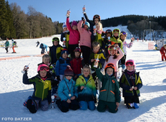 Bei der Siegerehrung im Anschluss ließ sich sogar die Sonne blicken und lachte mit den Kindern um die Wette. Die ersten drei pro Wertung durften aufs Stockerl und erhielten einen Pokal. Alle anderen bekamen eine Medaille, die sie sich stolz um den Hals hängten. Ein rundum gelungener Renntag mit einem krönenden Abschluss.