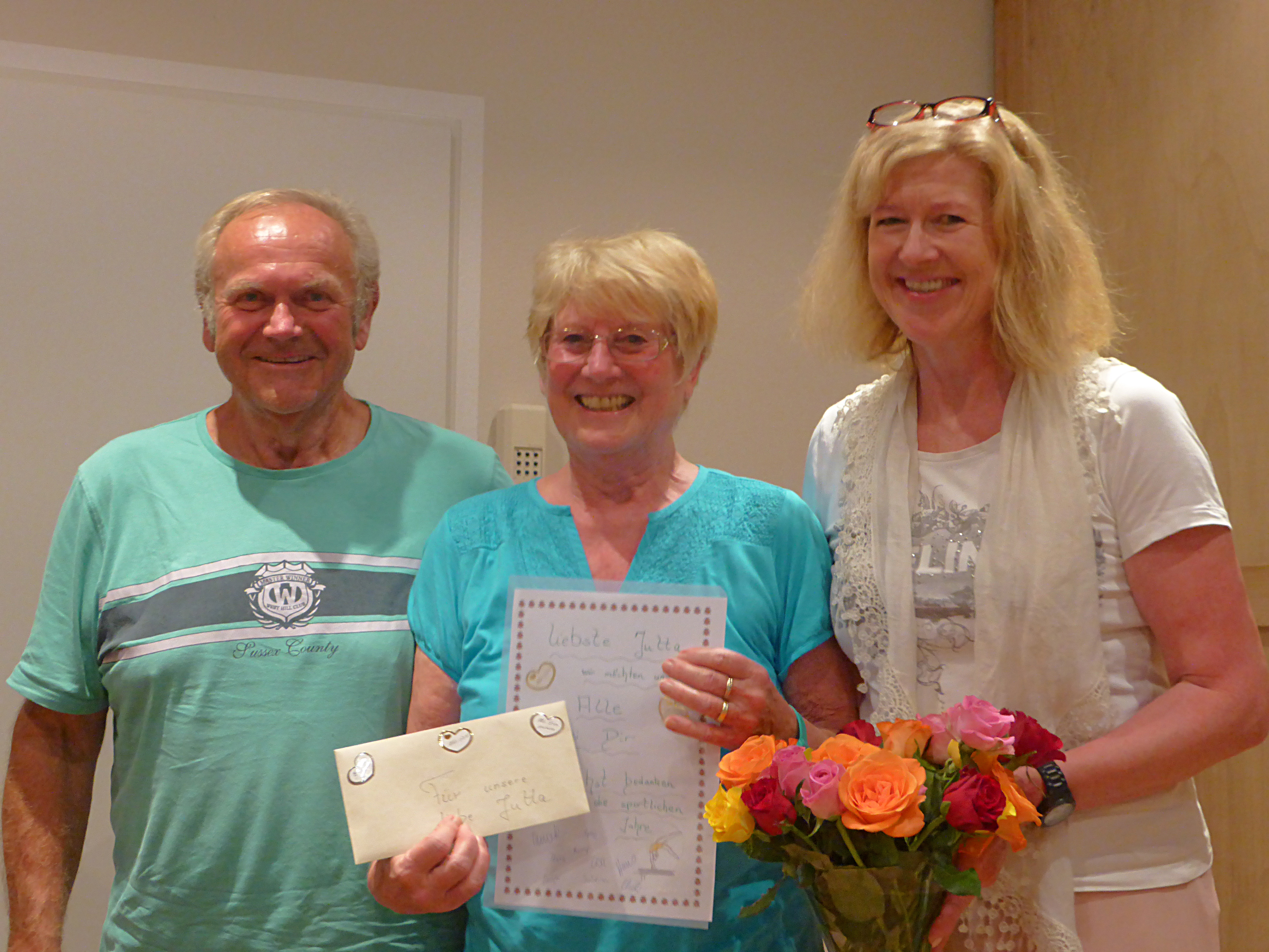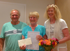 In der letzten Turner-Ausschußsitzung wurde Jutta Kirmayr von Spartenleiterin Uschi Killer und dem 2.Vorsitzenden Hans Breitschafter für Ihre langjährige Vorturnertätigkeit mit Blumen und einem Gutschein geehrt und vom aktiven Übungsleiterbetrieb verabschiedet. Wegen vorübergehender, gesundheitlicher Probleme, die es ihrer Meinung nach nicht zulassen, die Turnstunde so durchzuführen, wie sie es gewohnt war und ist, hat sie sich schweren Herzens zu diesem Schritt entschieden. Jutta Kirmayr prägte seit 1980 das Übungsleitergeschehen in der Sparte Turnen der SG Hausham entscheidend mit. 1982 gründete sie mit Regina Breitschafter die „Mutter-Kindturnstunde“ die bis heute zu den am best besuchtesten Übungsstunden zählt. Des weiteren wurden die Kleinkinderturnstunden eingeführt, das Leistungsturnen der Mädchen und seit dem Ausscheiden von Frau Grabinger die Mädchenturnstunden nach Alter gestaffelt. Alle diese Stunden hat Jutta Kirmayr wesentlich mitgeprägt und aktiv geleitet. Viele Turnfeste, so auch das Deutsche Turnfest in Dortmund und das Bayrische Turnfest in Ingolstadt und Bamberg bereiste sie mit ihren Mädchen. Nach dem Ausscheiden von Frau Murr übernahm sie sofort die Damengymnastikstunde, die sie bis zu den Sommerferien noch leitete. Für die Sparte Turnen/Volleyball/Leichtathletik war sie eine unverzichtbare, unermüdliche Helferin, ob es um die Bewirtung bei Sportfesten, als EDV Mitarbeiterin bei Veranstaltungen, Organisation von Kinderfaschingsturnstunden, die Einführung neuer junger Übungsleiterinnen, oder Helferin bei Schulsportfesten ging, Jutta war stets zur Stelle. Auch nach ihrem aktiven Ausscheiden aus dem Übungsleiterbetrieb werden ihre umfangreichen praktischen Erfahrungen und Ihre Mithilfe weiterhin der Sparte Turnen erhalten bleiben. Jutta vielen herzlichen Dank und weiterhin beste Gesundheit!