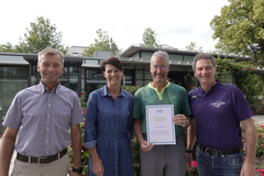 v.l.n.R.: BM Jens Zangenfeind, Carla Siglreitmeier (Vorstandsmitglied SG), Stephan Kaiser (Spartenleiter Handicap Integrativ), Matthias Müller (Spartenleiter Tennis). Foto: CG