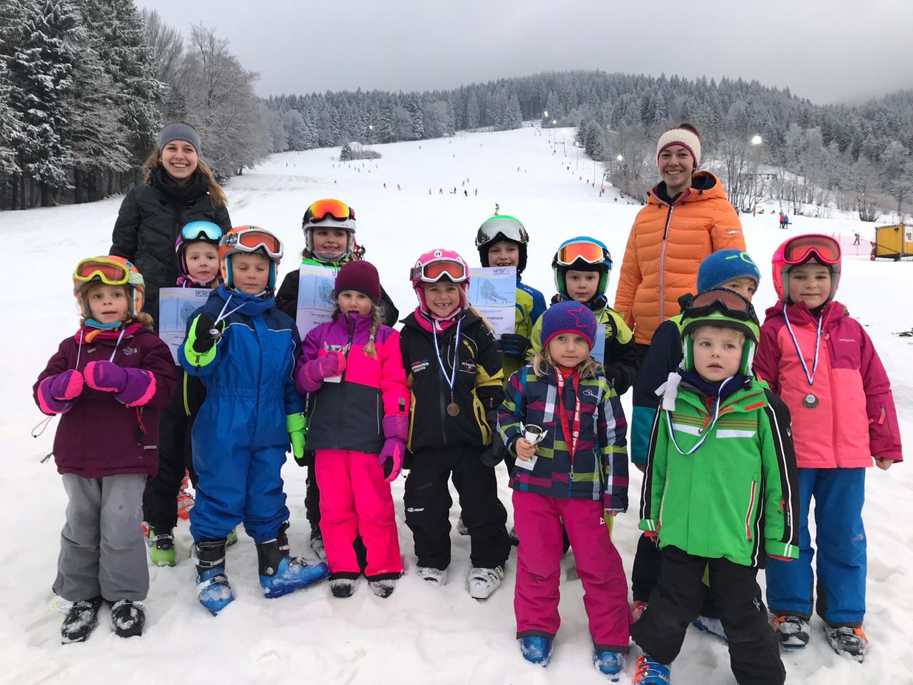 Die jüngsten Haushamer Alpinen haben noch keine eigene Rennserie, damit sich jedes Kind selber entscheiden kann, wie viele Rennen es fahren möchte. Doch die meisten unserer „Kleinen“ sind bei jedem Rennen mit Begeisterung dabei. 17 Rennmäuse der SG Hausham waren am Sonntag in Ostin beim WSV Zwergerlrennen am Start. Schön war auch die ungewöhnliche Startzeit um 14 Uhr – so konnten die Kinder doch ausschlafen und sich ordentlich stärken. 129 Skifahrer und Skifahrerinnen kämpften mit viel Spaß bei einem Riesenslalom um die Podestplätze. Es gab einen Durchgang, so konnten alle noch bei Tageslicht ins Ziel fahren. Foto!Die Haushamer freuen sich über folgende Ergebnisse: