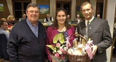 „Du bist ein Aushängeschild für Hausham.“ Mit diesen Worten empfing Bürgermeister Jens Zangenfeind (r.) die Leichtathletin Sabrina Zeug kürzlich im Gemeinderat. Um ihr persönlich nochmals Anerkennung und Glückwünsche für ihre „außergewöhnliche Saison“ auszusprechen, hatte er die 26-jährige Sportlerin zusammen mit ihrem Trainer Hans Zenzinger ins Rathaus eingeladen. Besonders hob er dabei den Titel der Deutschen Meisterschaft hervor, den sich Zeug vor Kurzem im Steinstoßen erkämpft hat (wir berichteten). Als Aufmerksamkeit überreichte Zangenfeind der Athletin einen Geschenkkorb sowie Blumen. Für Zenzinger gab es eine Flasche Hochprozentiges. Der Trainer bedankte sich bei der Gemeinde Hausham für die „guten Trainingsbedingungen“ auf der zentralen Sportanlage und versicherte dem Gremium: „Sabrinas Akkus sind noch nicht leer, da geht noch was.“ Quelle: Miesbacher Merkur vom 13.11.2018Foto!
