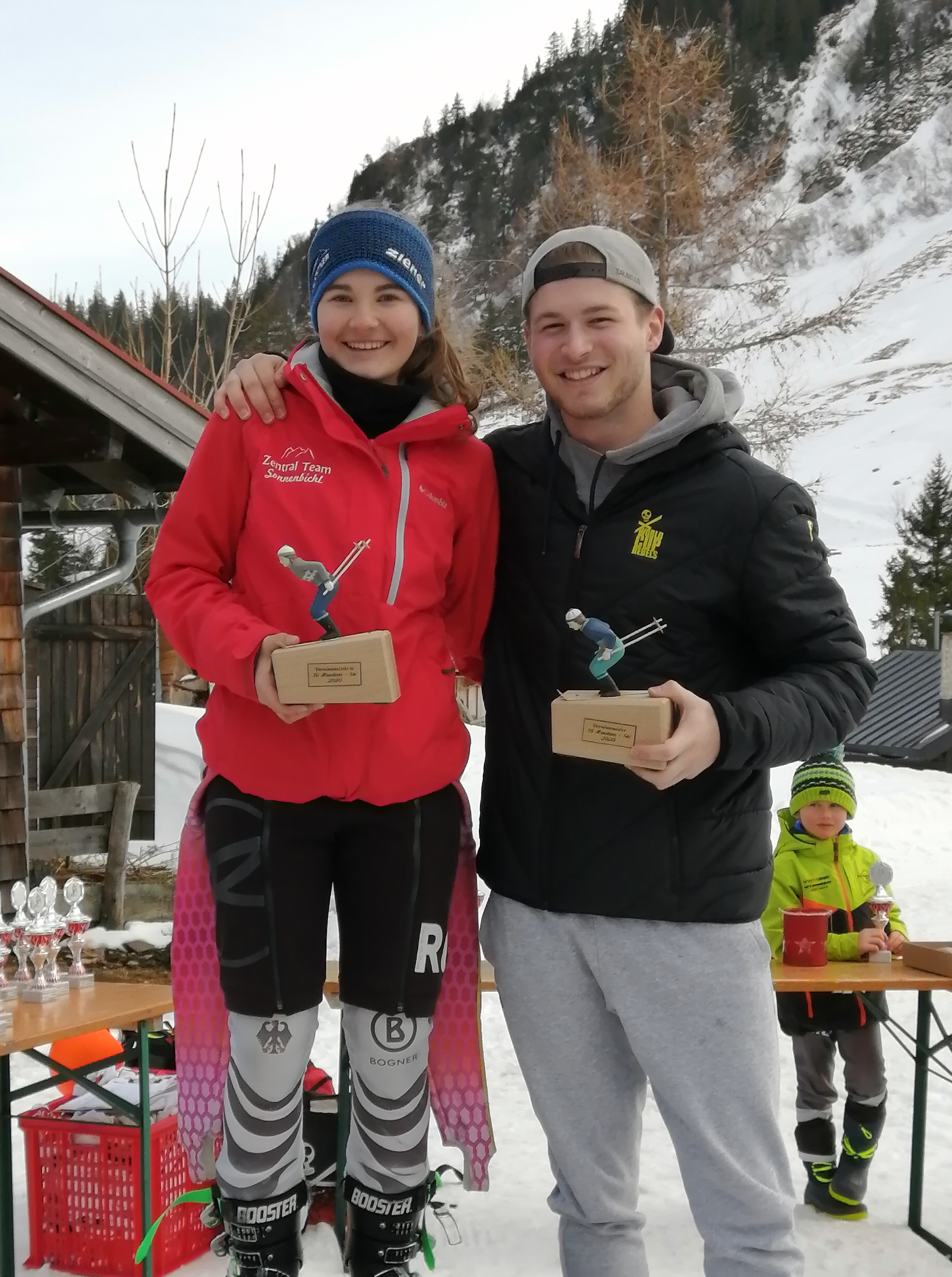 Im Anschluss wurden die Vereinsmeister bekannt gegeben. Unter großem Applaus konnten Christina Czernik und Jan Grünewald je eine handgefertigte Skifahrerskulptur aus Holz für Ihre souveränen Tagesbestzeiten entgegen nehmen.