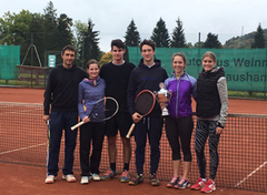 19 Tennis-Paare haben heuer beim traditionellen Karl Kirchberger Mixed-Turnier der Haushamer Tennissparte aufgeschlagen. Die Turnierleiter Peter Empl und Andreas Wagenpfeil brachten die Matches trotz einiger Wetterbedingten verzögerungen gut über die Bühne, so dass sich am Ende die Geschwister Yannik und Theresa Dreier den begehrten Pokal schnappten. Zweite wurden Ella und Matej Najman, die extra aus Tschechien angereist sind. Platz drei belegten Tobias Steiger und Lena Schöpfer. Foto groß!