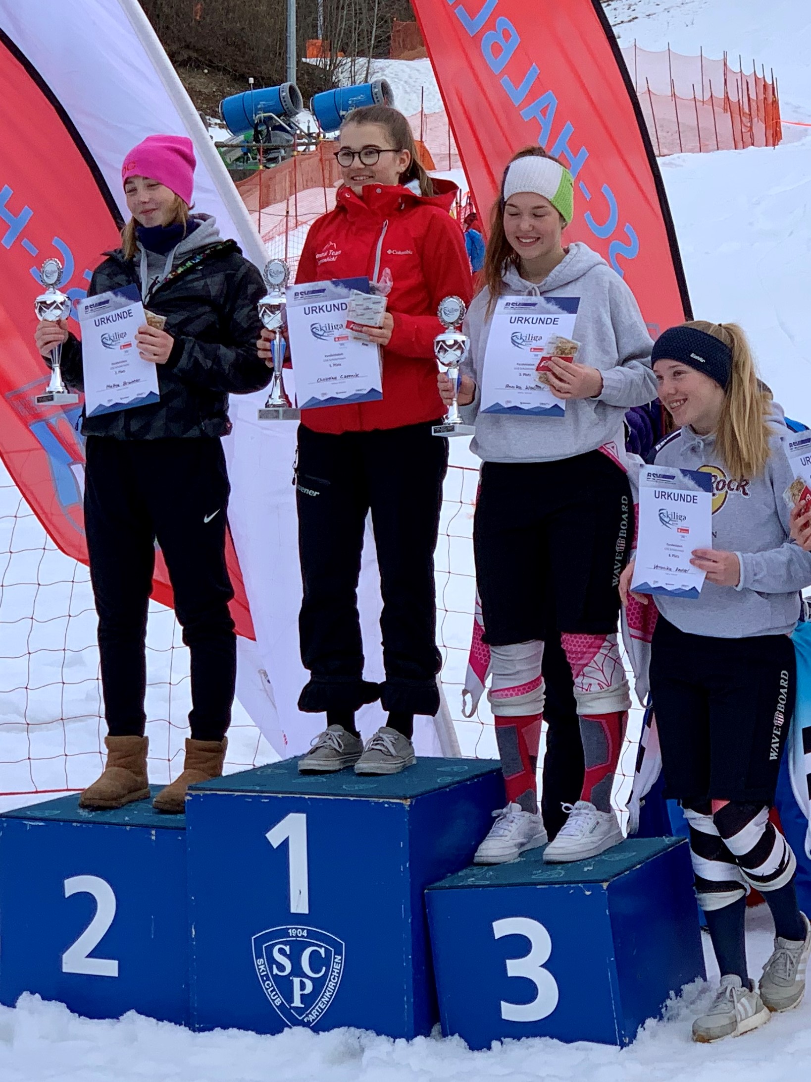 Christina Czernik, Sophia Wiedner und Konstantin Daurer durften den Skiverband Oberland bei der Skiliga Bayern vertreten. Kurssetzer in Garmisch war der ehemalige DSV Trainer Markus Anwander. Der Parallelslalom erfordert höchste Konzentration und schnelle Reaktion und das gelang Christina am Sonntag perfekt. Mit zweimaliger Laufbestzeit bei den Mädchen holte sie sich den Sieg und 100 Punkte für die Gesamtwertung. Sophia Wiedner fuhr auf Rang 31 und Konstantin auf Rang 24.
